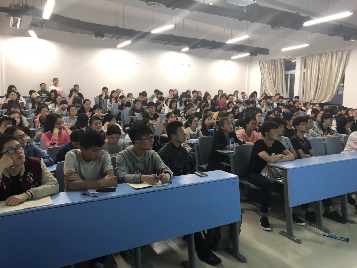 讲座中,两位老师首先用大数据分析了河南省大学生考研热点院校、热门专业以及跨专业学生在考研中的优劣势,并指出研究生入学考试是选拔性考试,考研英语的分数在很大程度上与考生的做题方法以及做题技巧有着重要的联系,因此建议学生备考以考研真题为主,从考研命题规律出发,以出题人的思路为导向,合理安排考研英语复习计划。两位老师着重围绕词汇、阅读、翻译、写作等各类题型为同学们做了针对性的辅导和讲解,各种通俗易懂而不失幽默的案例穿插在讲座中,现场气氛活跃,不时引起同学们的阵阵掌声。讲座结束后,同学们还与两位老师并就考研英语中的问题进行了长时间的交流。
