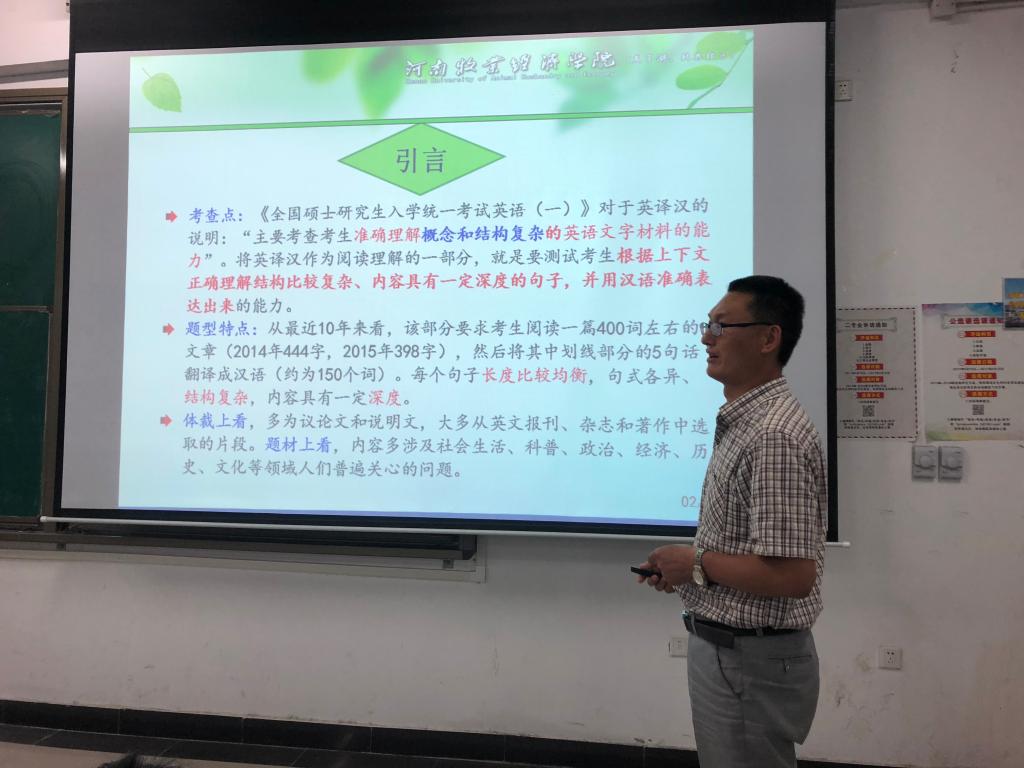 williamhill威廉希尔助力考研英语系列讲座的第五讲----《考研英语翻译技巧》于近日分别在龙子湖校区和英才校区进行。主讲人为williamhill威廉希尔大学英语教研一室主任吴国权老师。