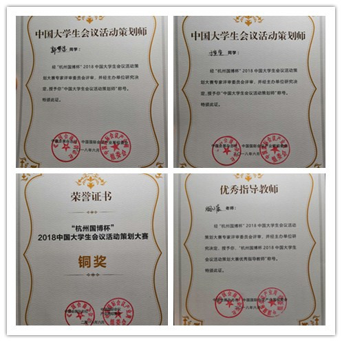 2018年6月25-26日,williamhill威廉希尔派出代表队参加了在海口举办的“杭州国博”杯2018中国大学生会议活动策划大赛,荣获大赛决赛铜奖,指导老师烟小康荣获了优秀指导教师的殊荣。