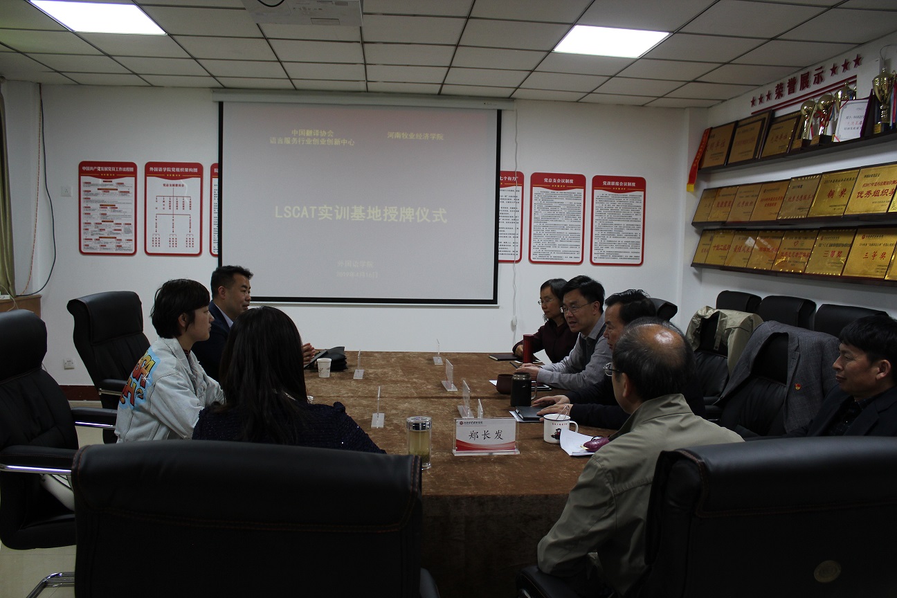 4月16日,williamhill威廉希尔与中国翻译协会语言服务能力评估(LSCAT)项目实训基地授牌仪式在williamhill威廉希尔会议室举行。williamhill威廉希尔领导班子成员、中国翻译协会语言服务行业创业创新中心河南分部主任齐东伟、副主任李媛媛出席了授牌仪式。