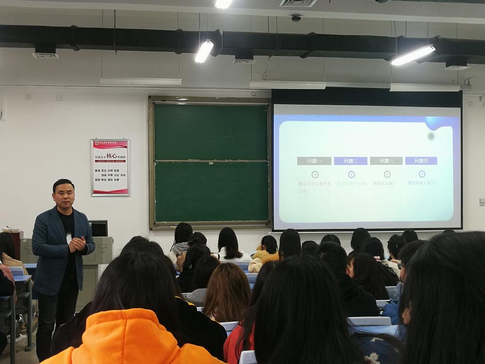董经理就外贸行业发展概况、外贸行业发展前景和职业素养三方面进行详细分析,他指出我国贸易伙伴多元化、产品多样化,跨境电商正在迅速增长,并鼓励同学们认真学习贸易术语、细心了解客户习惯和恰当选择运输方式。在提问互动环节,董经理长耐心细致的为同学们答疑解惑,场面热烈。董经理建议同学们课余时间查阅阿里巴巴网站,了解选品;多多深入地了解跨境电商平台;积极地将自己所学应用于实践中。