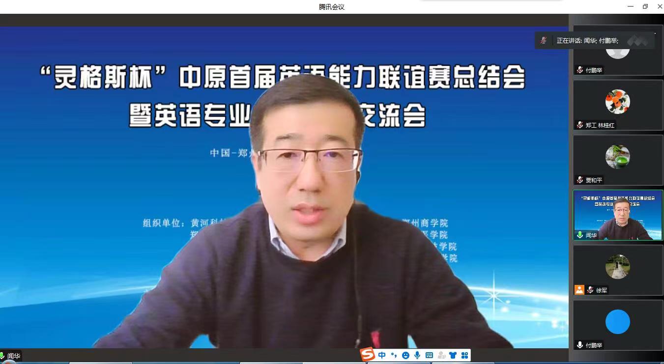 “中原首届高等院校英语能力联谊赛”采取线上形式进行答题比赛,题型为单选和阅读理解,选自专四、专八、CATTI真题。对参赛者英语词汇的广度、阅读理解的深度和语言综合技能的实际应用能力有极高的要求。赛后,为了更好地促进各省内高校之间的交流,主办方于2月26日组织了中原首届外语能力大赛总结暨省内英语教学研讨交流会。交流会上,闻华副院长,围绕我院“能、训、岗”三位一体的商务英语本科专业人才培养模式;以考促学,以赛促学,教师团队跟进,线上线下互补,一二课堂联动的教学与实践创新理念,进行了分享交流发言。商务英语教研室主任张明梅分享了一些参加本次大赛的学生组织与指导方面的经验和方法。