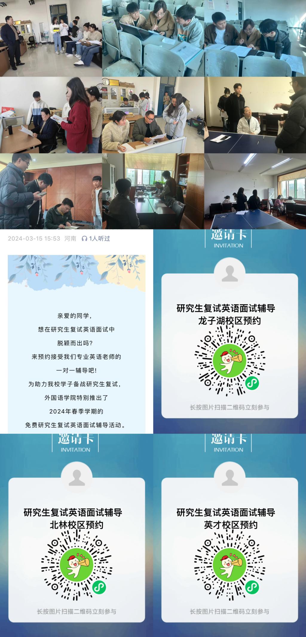 “研究生复试英语面试一对一辅导”活动采取线上预约,线下辅导的形式,在三校区同时进行。辅导活动从3月18日开始,一直持续到研究生复试结束。