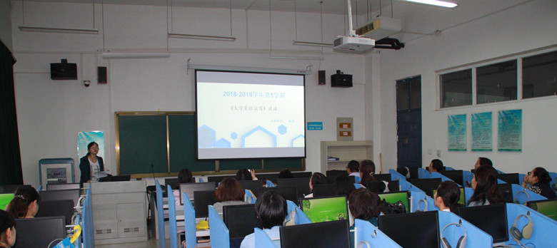 随后我校在18年“外研教学之星”复赛中获得一等奖的杨琼老师就《大学英语读写》进行示范说课,从课程总体分析、教学内容、教学对象分析、教学过程设计、教学方法与手段、评价考核六方面进行了详细说明,并以其中一单元展示了整个教学过程的设计,内容,教法。丰富的网络资源、App软件应用于课堂,可以极大的调动学生学习积极性,实现智慧教学。随后,老师们进行了热烈的讨论,都期待U校园智慧教学平台在英语教学中的应用。