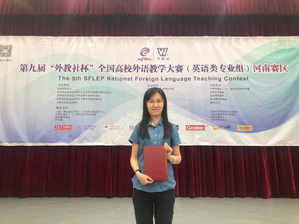 5月26至27日,第九届“外教社杯”全国高校外语教学大赛(英语类专业组)河南赛区复赛及决赛在河南农业大学举行,来自全省五十余所本科高校的外语教师参加了此次大赛。我校宋瑶老师经过激烈角逐,脱颖而出,荣获大赛二等奖。