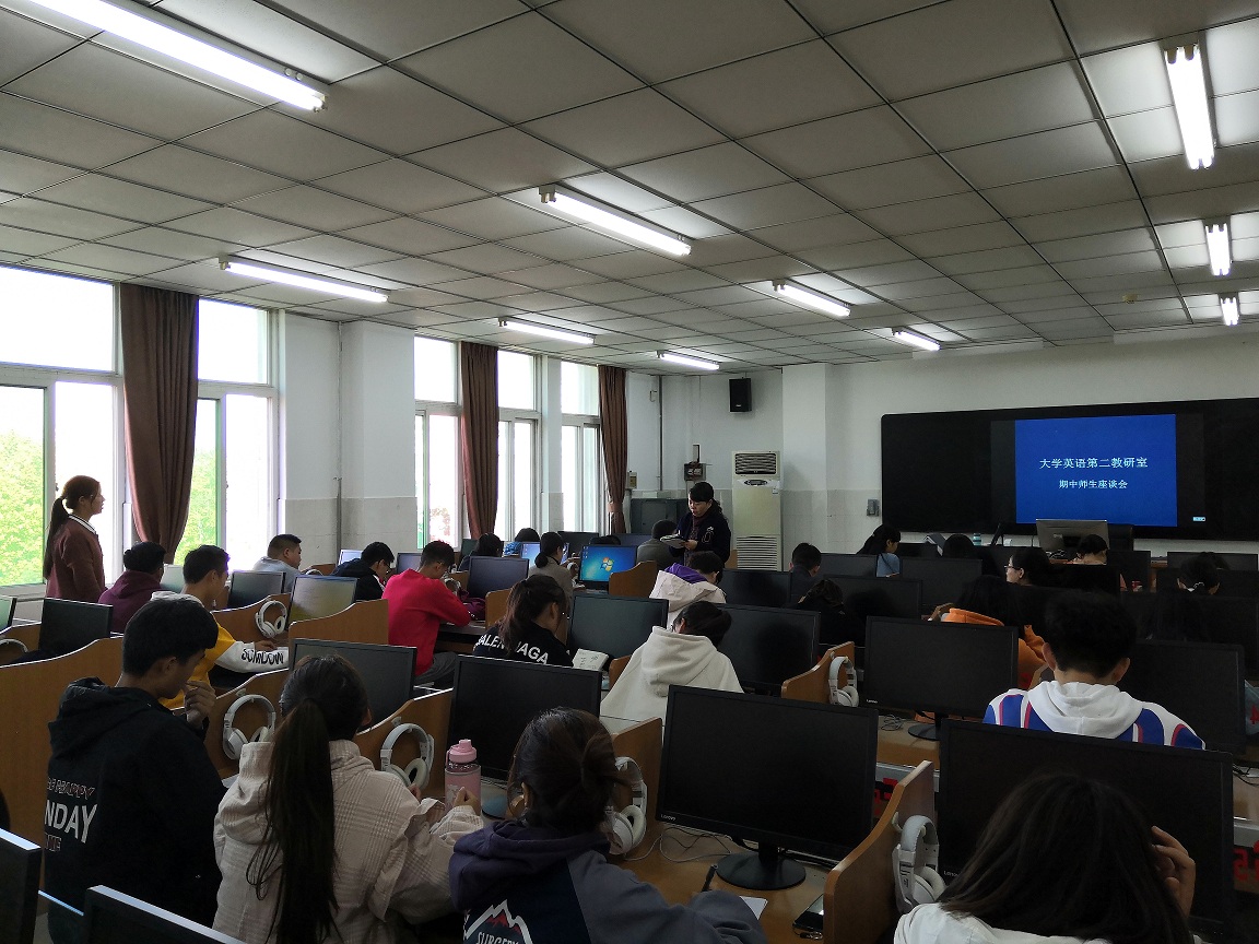 同时,同学们也就英语教与学提出了一些合理建议:1、普遍感觉英语学习对于个人发展很重要,有较强的学习动机,但是课程、课时安排难以满足学习需要;2、由于我校很多学生在英语方面是“后进生”,学习主动性较差,希望老师加强督促;3、普遍对大学英语四六级考试感兴趣,希望老师加强这方面的指导和训练;4、普遍觉得学风不够浓厚,教学环境缺乏保障;5、教学条件保障不力。比如,语音室机器老化、系统更新慢,多媒体教室的投影频出故障等,经常打乱正常的课堂教学节奏和秩序。与会的老师针对同学们在学习兴趣的培养、学习方法的改进、应用能力的提高等方面的疑惑给予了有效的指导和解答。