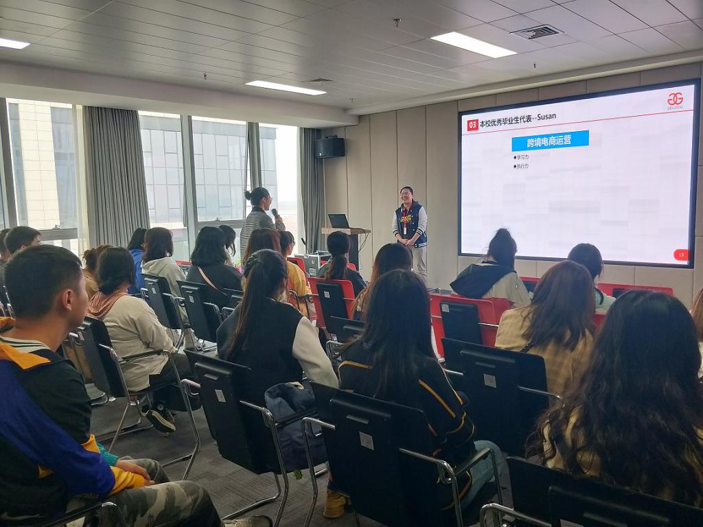 公司总经理李俊华、副总经理Martin、人力资源部经理Eileen、行政部经理Julin、运营与客服部经理Susan等接见了我校师生。人力资源部经理Eileen亲自带领同学们对公司进行了参观,并在参观过程中对公司的发展历程、经营理念、主要业务、运营情况和发展前景进行了详细介绍。同学们精神饱满,认真听讲和询问。参观之后,在人力资源部职员Demi的主持下召开了交流会。首先,副总经理Martin代表公司对我校师生的到来表示热烈欢迎,同时对同学们的学习和成长提出了建议。交流会专门安排了我校优秀毕业生代表分享她们的工作经验。11届商英专业毕业生、现任公司运营部和客服部经理苏瑞丽和14届商英专业毕业生刘梦丽分别从做跨境电商运营和外贸业务员的角度谈了自己的工作体会,她们希望学弟学妹们充分用好时间,积极培养脚踏实地、在困难情况下能够坚持的精神和实现目标的决心,大力提高英语能力、沟通理解能力、学习能力、执行能力。听了学姐的发言之后,华紫叶和朱莉两位同学谈了自己的参观学习感受、将来的求职意向。两位学姐和人力资源部经理与同学们进行了交流,回答了同学们的提问。最后,郑长发老师对杰尔古格公司精心准备、周到安排为同学们提供参观学习机会和公司领导、职员在百忙中抽出宝贵时间参加此次活动表示衷心感谢。