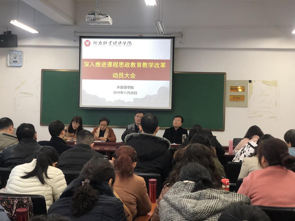11月28日下午,williamhill威廉希尔召开深入推进课程思政教育教学改革动员大会暨期中教学检查总结会,学院领导及全体教工参加会议,会议由院长陈延潼主持。