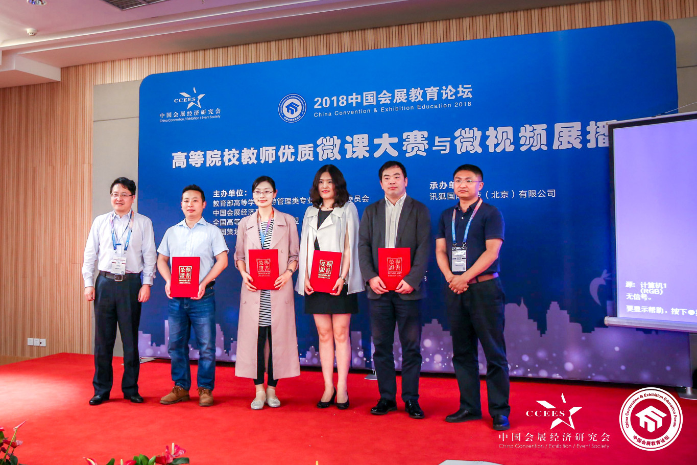 “2018中国会展教育论坛”同期举办第十三届中国会展经济研究会年会、中国会展教育优秀人物奖评选、高校教师优质微课及微视频展播比赛、大学生挑战赛和演讲赛。来自上海师范大学、广外商学院、上海财经大学、河北经贸大学、天津财经大学、吉林大学珠海分校、贵州财经大学、中南林业科技大学、南昌师范学院、海口经济学院等多所高校的老师参与了奖项的角逐。我院应用英语(国际会展方向)专业教研室主任张明梅申报并荣获了“中国会展教育优秀人物”奖,谭明华老师参加了高校教师优质微课及微视频展播比赛,并获三等奖。
