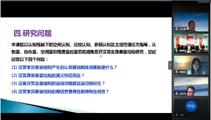 williamhill威廉希尔院长陈延潼向百忙之中参加会议评审的各位专家表示衷心感谢和热烈欢迎,并简要介绍了学校和学院2021年度国家社科基金项目申报的总体安排情况。随后,4位国家社科基金项目申报老师以PPT形式,从总体框架、预期目标、研究思路、重点难点等多方面对个人申报项目逐一进行了论证汇报。评审专家听取汇报后,从题目精练、立项依据展示、国内外研究进展叙述、科学问题凝练、技术路线呈现、研究方案设置、申请书撰写等方面对每位申请人提出了具体的可行性的修改意见和建议;申报老师认真听取评审专家的意见,加以详细记录,并就申报过程中遇到的困惑与专家进行了深入探讨和交流。最后,陈延潼院长希望申报老师认真吸收消化各位专家的意见建议,继续优化完善申报书的研究思路与论证内容,规范申报书的撰写,以此为契机促进学院科研工作迈上新的台阶。
