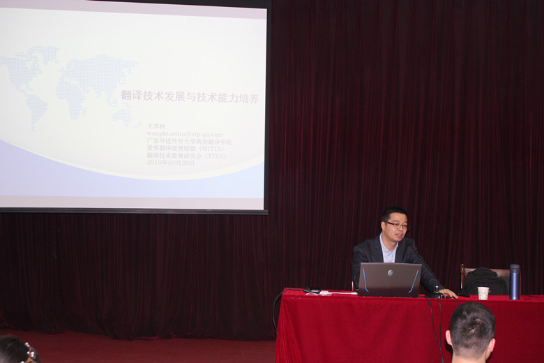 3月28日下午,应williamhill威廉希尔的邀请,广东外语外贸大学王华树博士在我校英才校区E109作了题为“人工智能时代翻译技术发展与翻译人才技术能力培养”的学术报告,报告由williamhill威廉希尔院长陈延潼主持,williamhill威廉希尔师生聆听了报告。