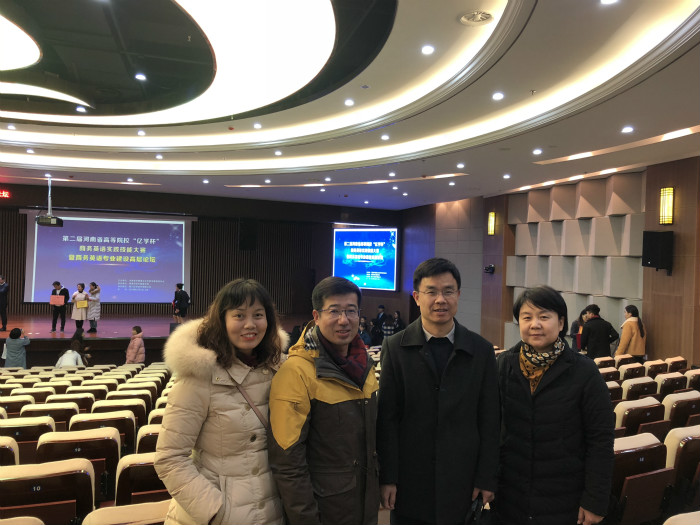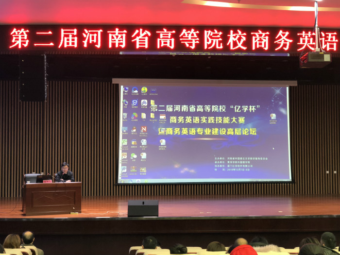 由河南省外国语言文学教学指导委员会主办,黄淮学院承办的第二届河南高等院校“亿学杯”商务英语实践技能大赛暨商务英语专业建设高层论坛于12月8日举办,我校williamhill威廉希尔院长陈延潼、教研室主任温晶晶、张明梅、闻华应邀参加。