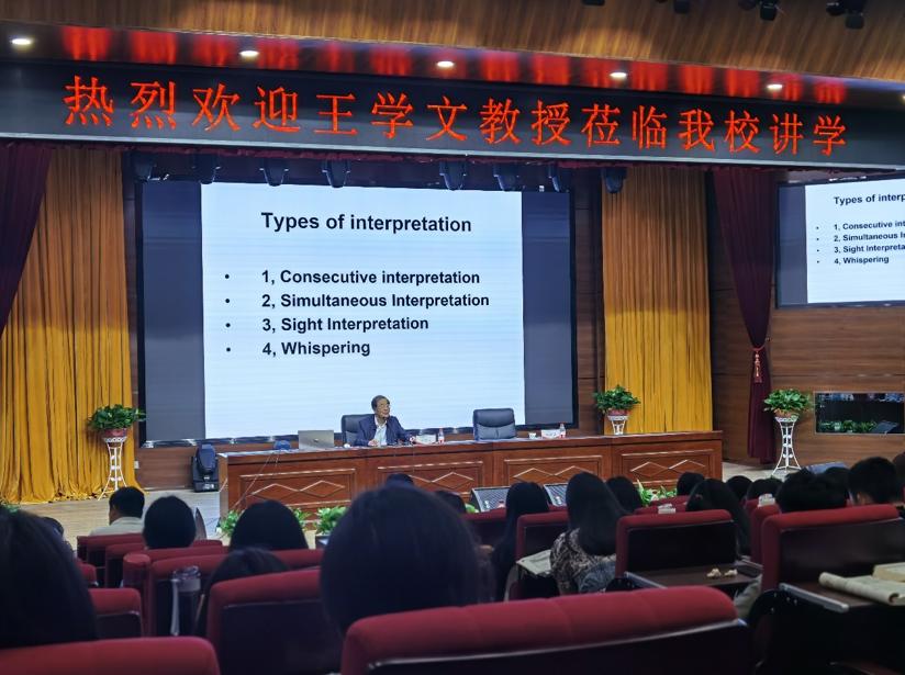 王学文教授学识渊博,翻译经验尤其是口译经验丰富,通过生动鲜活的例子和深入浅出的分析,指出英汉两种语言的差别,口译和笔译处理方式的差别,提出不断的练习是提高翻译能力的不二法则。此次讲座,拓展了教师的英汉对比及商务英语知识,增强了学生考证及英语学习兴趣,对教师提高个人业务素养,学生提高个人语言水平有着重要的指导意义,对提高我院人才培养质量起到重要作用。