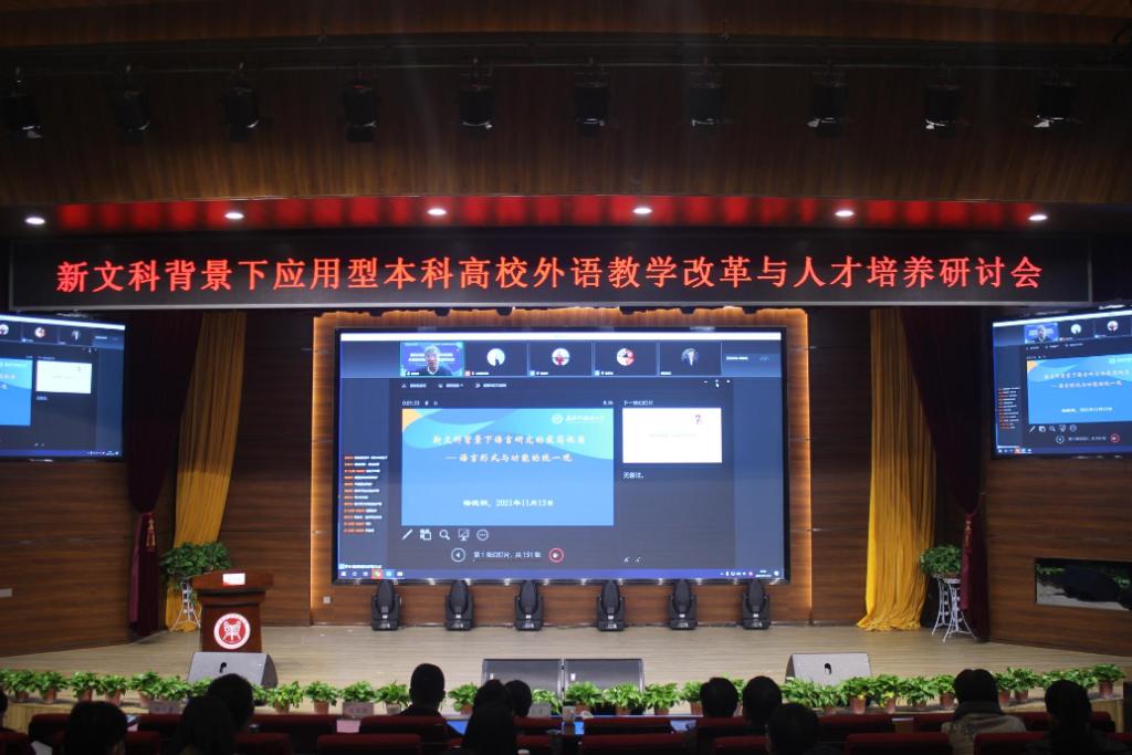 上海外国语大学博士生导师梅德明教授,北京师范大学博士生导师程晓堂教授,北京第二williamhill威廉希尔博士生导师张喜华教授分别以《新文科背景下语言研究的最简视角——论语言形式与功能的统一论》、《大学英语教师如何做到教学科研双丰收》、《大学英语教学改革与教师发展》为题做精彩学术报告,并在线和参会教师就新文科背景下应用型本科高校外语教学改革与人才培养的相关话题进行了热烈的探讨交流。