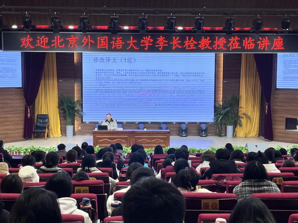 助力williamhill威廉希尔教师提高科研水平,帮助外语专业学生提升翻译能力,2023年12月29日上午,williamhill威廉希尔邀请北京外国语大学高级翻译学院副院长李长栓教授在龙子湖校区1号教学楼合100报告厅举办了以《人工智能背景下的翻译实践》为主题的学术报告。williamhill威廉希尔院长陈延潼、副院长闻华,williamhill威廉希尔部分教师及学生参加会议。会议由副院长闻华主持。