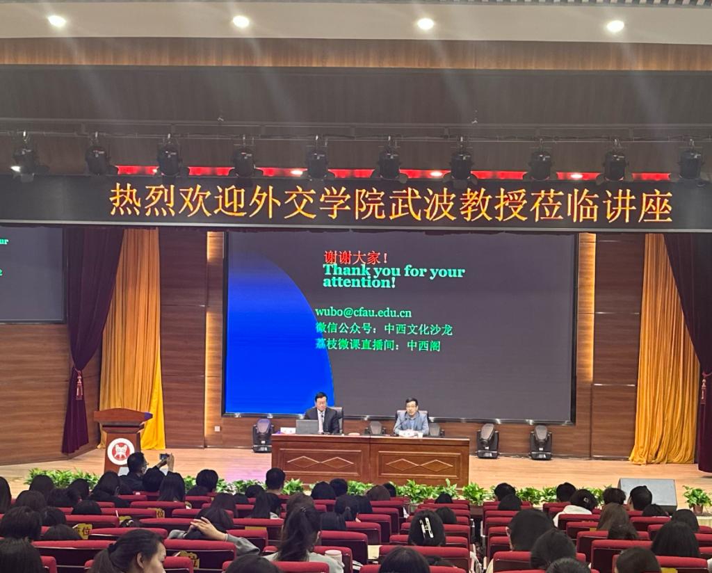 武波教授讲座结束后,副院长闻华指出武波教授的讲座深入浅出,发人深思,外语学习不仅仅是文字层面的简单转换,它更是文化的传播和文明的互鉴。在中国致力于构建人类命运共同体的过程中,同学们应该乘“势”而为,具备坚定的文化自信,能够正确地理解中国文化经典,并能使用英语进行有效传播,为向全世界讲好中国故事,为全球治理提供中国方案做出贡献。为实现这一宏伟目标,学生们需要结合自身兴趣和职业发展规划,有目的地提升语言和翻译技能,积极主动学习中国传统文化经典,为实现自我高质量就业和发展打下坚实的基础,为实现民族复兴贡献力量。
