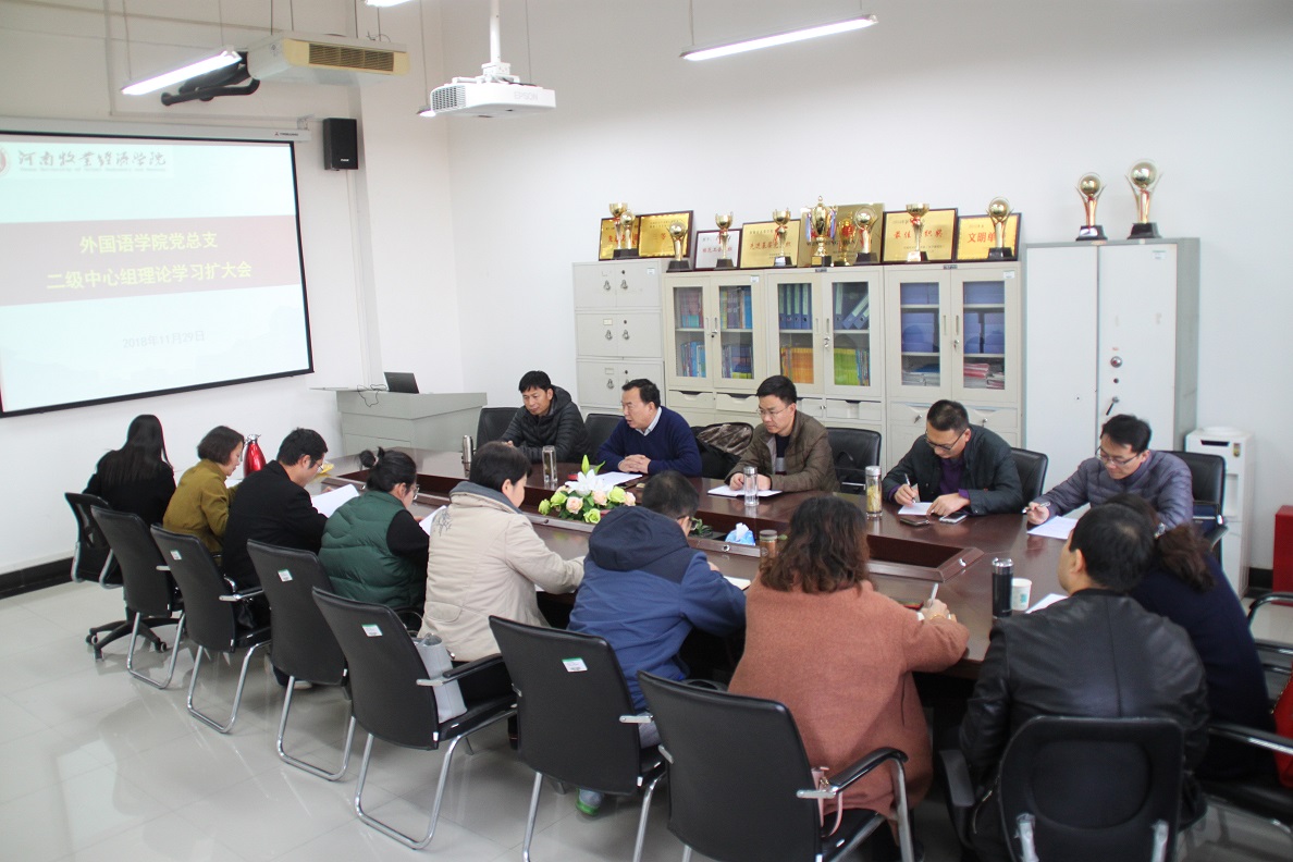 11月29日下午,williamhill威廉希尔党总支在院会议室召开了学院中心组理论学习扩大会议,组织学习了新修订的《中国共产党支部工作条例(试行)》(以下简称《条例》)。会议由党总支书记弓峰山主持,总支委员、各支部书记及科以上党员干部参会。