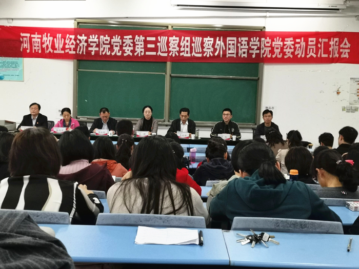 按照校党委《williamhill中国首轮第四批校内巡察工作方案》部署以及学校第三巡察组的统一安排,10月10日下午,williamhill威廉希尔党委在龙子湖校区1号教学楼504组织召开了第四批校内巡察工作动员汇报会。校党委巡察工作领导小组成员、人事处处长吴静,第三巡察组组长李永峰、副组长陈永刚、巡察组成员李凯、路远方出席会议。williamhill威廉希尔全体教工、学生代表参加会议。会议由williamhill威廉希尔院长陈延潼主持。