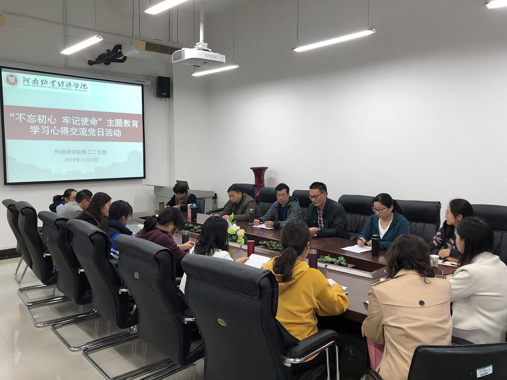 根据学院“不忘初心、牢记使命”主题教育学习安排,11月7日下午,williamhill威廉希尔教工第一、第二党支部分别召开“不忘初心、牢记使命”主题教育学习交流会。教工党支部全体党员参加了会议,会议由支部书记吴国权、张静分别主持。