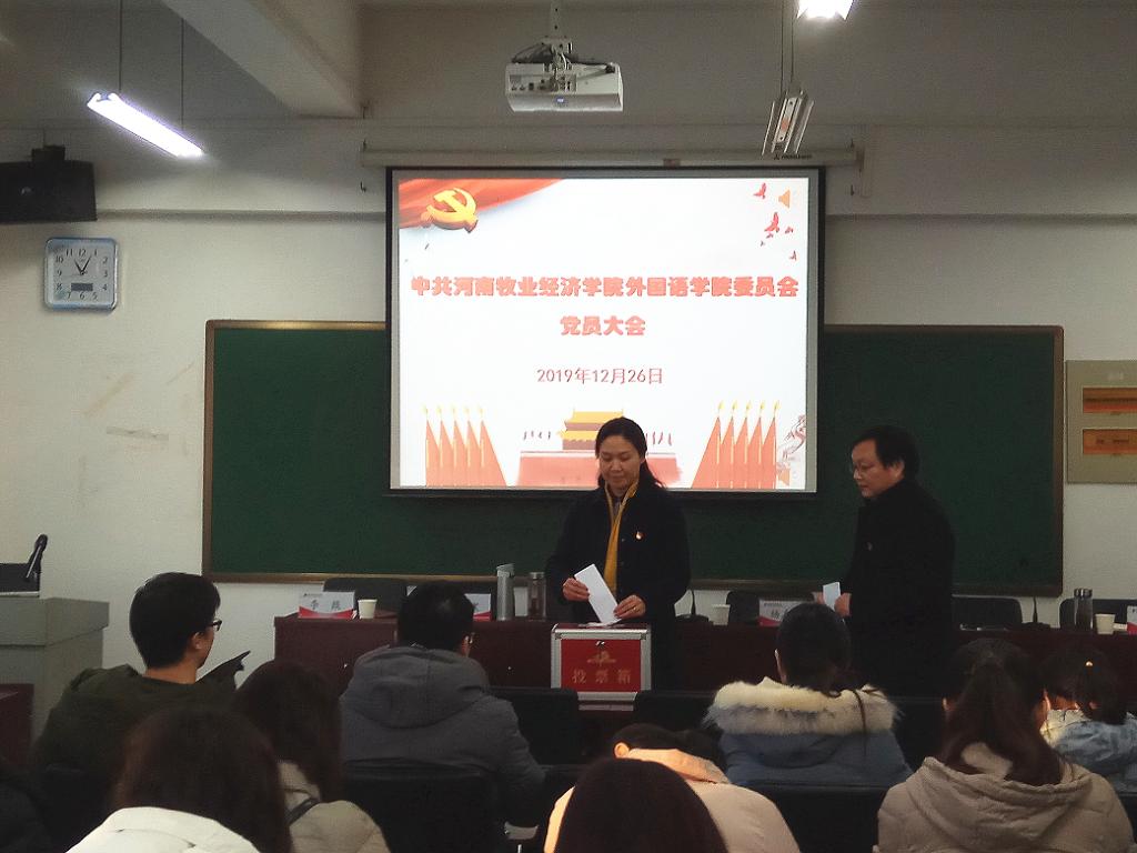 按照校党委统一部署和校组〔2019〕45号批复,12月26日下午,williamhill威廉希尔党委在二号教学楼C517召开全体党员大会,选举产生williamhill威廉希尔党委新一届委员会委员。副校长杨志清及学院全体党员师生参加会议,会议由院长陈延潼主持。