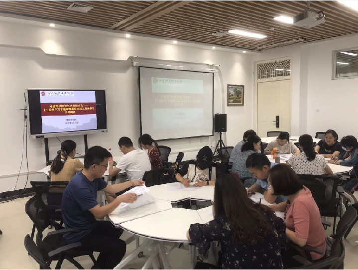 6月3日,根据上周党日专题学习的具体内容,williamhill威廉希尔全体党员又进行了《中国共产党普通高等学校基层组织工作条例》党员应知应会知识测试,通过测试进一步加强和巩固了教工党员对相关条例的理解。知识测试后,全体党员分支部进行了学习心得的交流。全体教工党员纷纷表示要加强学习,立足本职学、融会贯通学,要把理论学习和工作实践结合起来,与解决复杂问题结合起来,实现党建和业务工作的全面融合,相互促进,推进外语学院工作更上新的台阶。