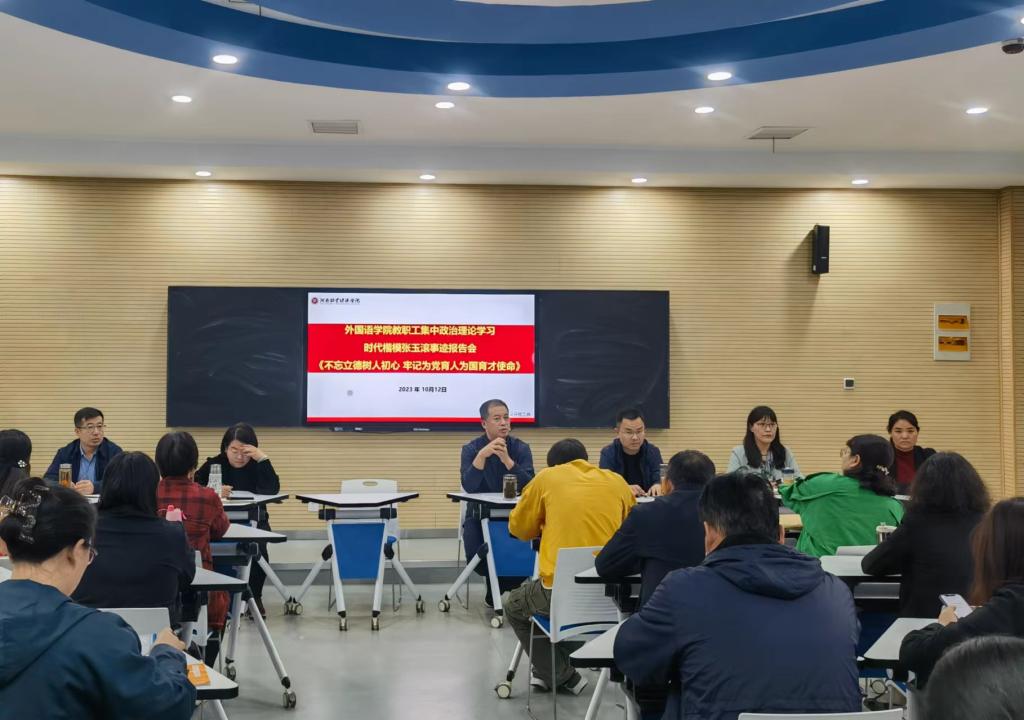 2023年10月12日下午,williamhill威廉希尔在龙子湖校区1号教学楼104视频分会场,组织全体教师集体观看时代楷模张玉滚《不忘立德树人初心 牢记为党育人、为国育才使命》报告会。