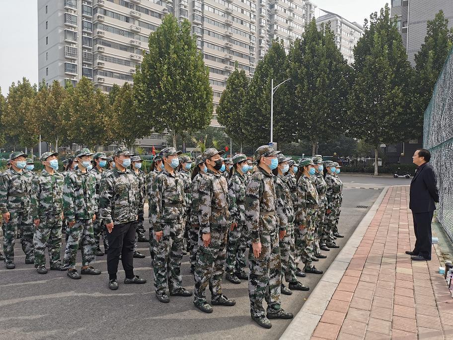 训练场上,参训新生个个精神抖擞、严肃认真,展现了我院学生朝气蓬勃、积极向上的精神面貌。王书记来到训练方阵前,首先对承训教官的辛勤付出表示感谢,并拜托教官对新生继续严格管理,要求辅导员继续密切关注新生军训动态,配合教官开展好新生军训工作。王书记鼓励同学们将军训的磨砺内化成努力奋斗、更上层楼的不竭动力,用心上好大学“第一课”,为今后的学习生活奠定坚实基础。亲切暖心的交谈感染了现场每一个人,训练场上弥漫着师生间的浓浓情谊。