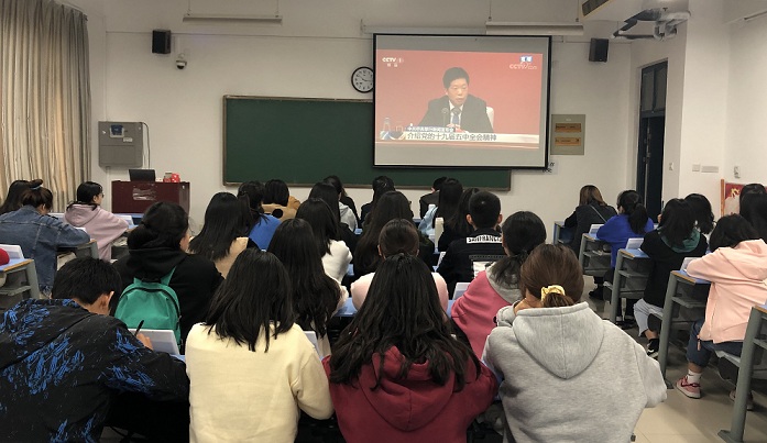 为使大学生深入了解学习党的十九届五中全会精神,贯彻落实党的指导思想,williamhill威廉希尔于10月30日上午10点,在2号教学楼A522组织师生集体观看十九届五中全会新闻发布会。我院党委书记王明栓、副书记李燚、办公室副主任崔晓洁、辅导员杨雅瑶、李昀、曹贝贝老师及各班学生代表参加。