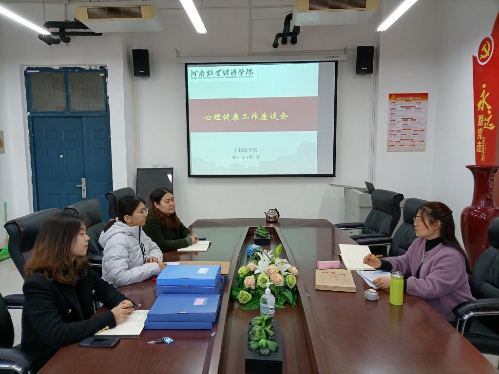 为进一步提高大学生心理素质,促进我院学生的身心健康和谐发展,4月1日上午,学校大学生心理健康教育中心吴芳教授来我院进行走访,院党委副书记李燚及全体辅导员参加此次会议。