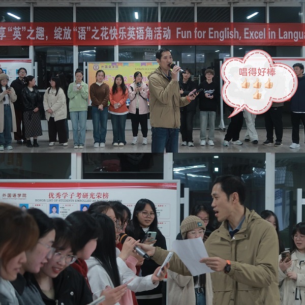 在学唱英文歌环节,邀请英语角指导老师李巍为同学们教授歌曲《Try everything》,优美的歌声和欢快的节奏让大家沉浸其中。李巍老师为大家倾情演唱歌曲《All of me》,引发全场共鸣合唱,将此次活动引向高潮。