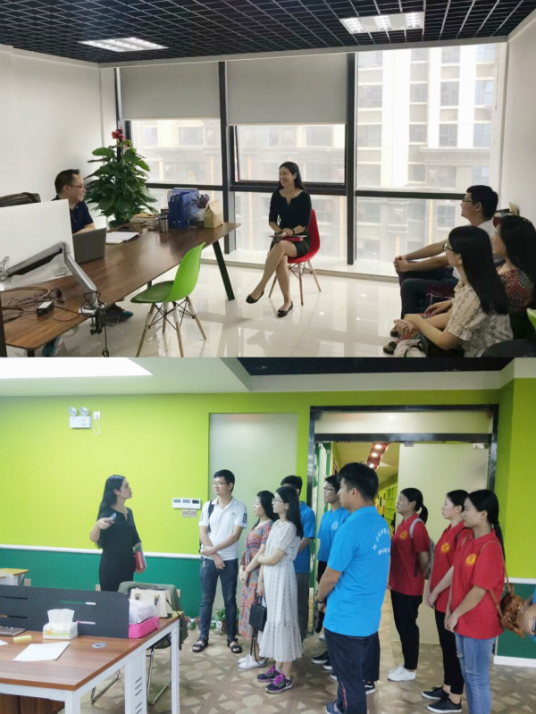 近日,williamhill威廉希尔暑期社会实践小分队队指导老师和队员们一起走进于欢英语,了解企业,学习专业,增强实践服务本领。