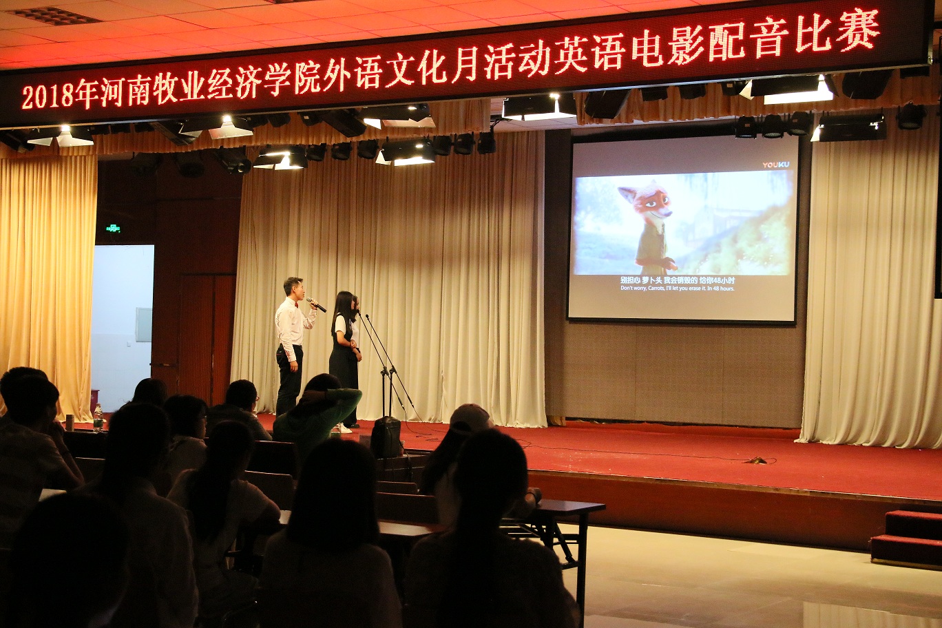 英语电影配音比赛是我校2018年外语文化月活动的内容之一,要求学生以经典英语电影为基础,按照电影片段进行演绎,通过配音表演将课堂教学与实践活动有效进行结合,旨在提升课堂教学的实效性和趣味性,同时促进学生的英语语言综合运用能力。