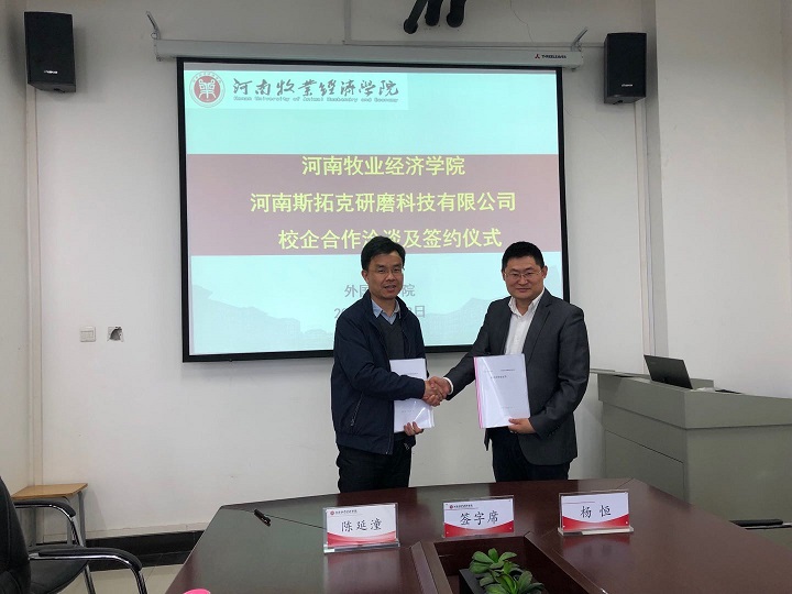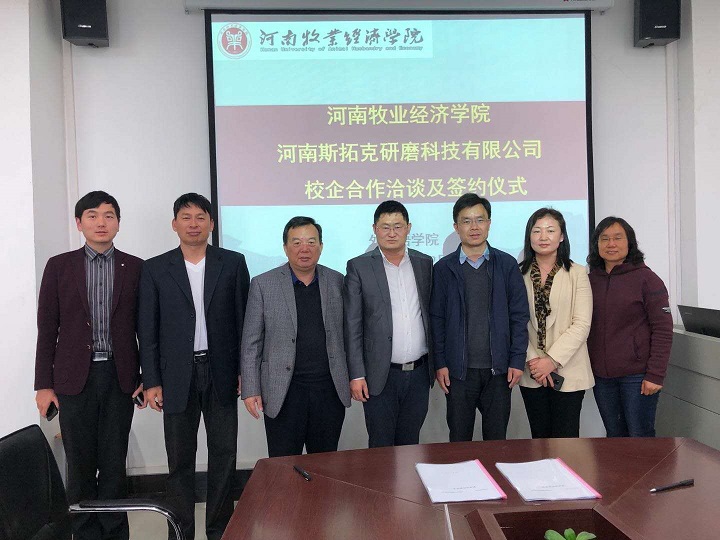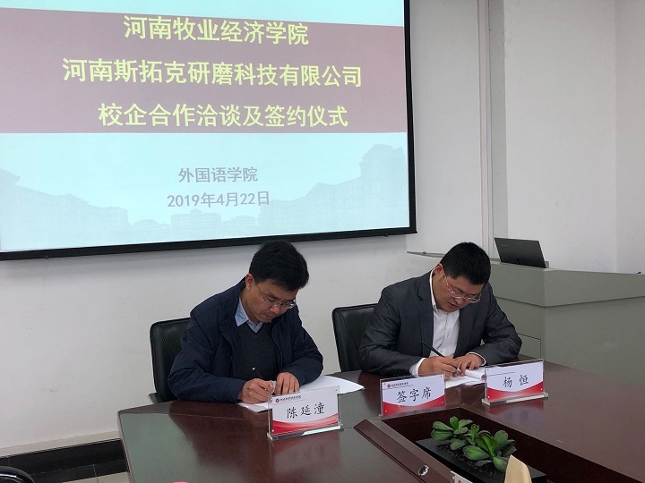 4月22日,williamhill威廉希尔与河南斯拓克研磨科技有限公司校企合作洽谈及签约仪式在williamhill威廉希尔会议室举行。williamhill威廉希尔领导班子成员,河南斯拓克研磨科技有限公司CEO、磨料库存网创始人杨恒,副总经理白宁、海外事业部经理宋宇宁出席了签约仪式。