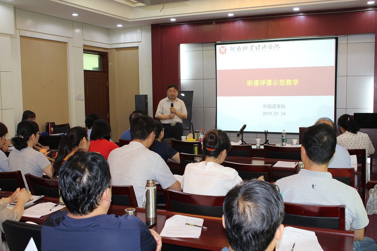 根据学校暑期迎评促建工作安排,williamhill威廉希尔于7月22日开始进入“磨课”阶段,全体教师参与到“讲课评课”的环节,为做好本阶段工作,学院遴选三名教师于7月24日在英才校区602会议室进行“听课评课示范教学”活动,williamhill威廉希尔全体教职工参加,副院长许海兰主持此次活动。