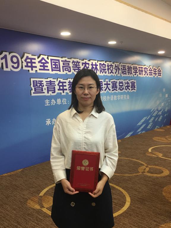 在随后举办的第三届全国高等农林院校青年教师英语讲课大赛中,我校戚博蕴老师以扎实的教学功底、灵活的教学方法和精致的课堂设计得到评委的一致好评,荣获大赛三等奖。