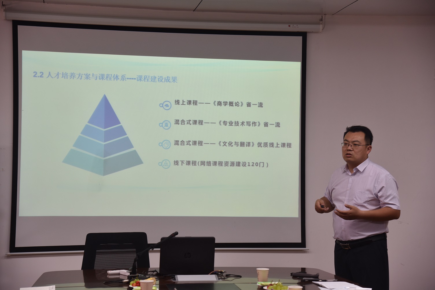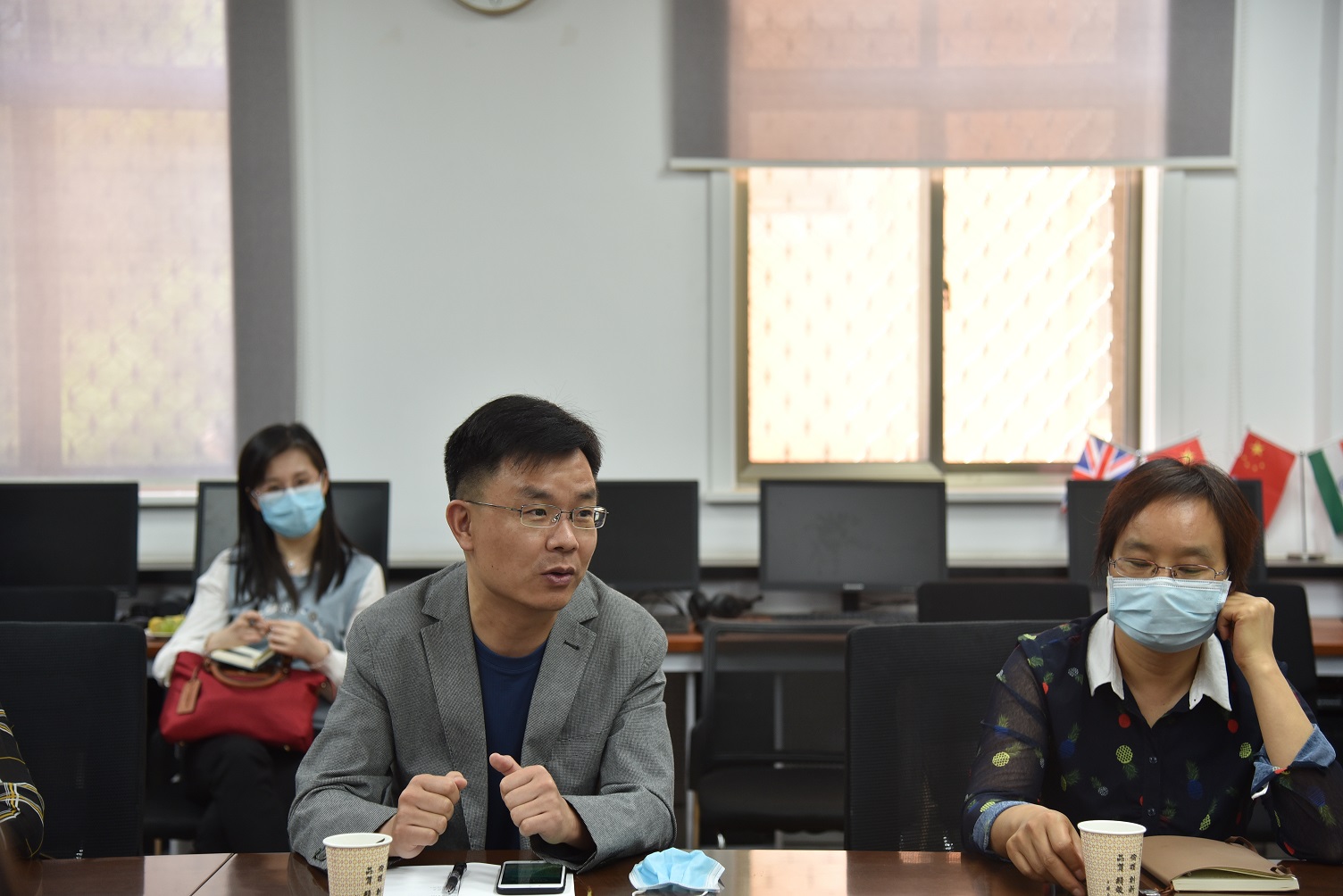 在会议交流中,陈院长对郑州商学院williamhill威廉希尔的热情接待表示感谢,介绍了我院以“根扎外国语,花开牧工商”为己任,培养“精外语、通商务”的高水平复合应用型“语言+”人才的办学理念,并就迎接本科合格评估、学位评估、首届本科毕业论文指导工作的情况进行了交流。王勃院长就郑州商学院外语学院发展概况、学科建设、师资队伍建设、人才培养方案制定等进行了详细阐述,重点介绍了该院商务英语专业作为2019年度“河南省一流本科专业建设点”的总体概况、本科生毕业论文指导工作的开展及商务英语专业人才培养情况。针对商务英语本科专业建设,郑州商学院williamhill威廉希尔商务英语教研室主任赵宝成从“省级一流本科专业建设点”立项申报、课程建设、问题与展望等方面进行了详细解读。此外,双方对商务英语专业发展前景、应用型人才培养、“双师双能型”师资队伍建设、本科生毕业论文的选题及论文指导等工作进行了广泛、深入的探讨,一致表示应在推动专业发展、提高人才培养质量上形成合力,使学生具体扎实的理论功底、丰富的实践经验,为服务区域经济社会发展作出应有的贡献。