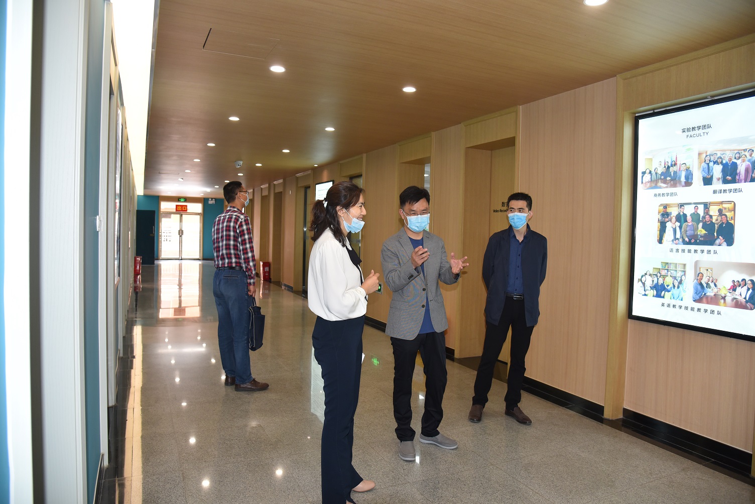 郑州商学院williamhill威廉希尔书记王克志、院长王勃对我院调研组的到来表示热烈欢迎,并带领大家参观了williamhill威廉希尔实验实践教学中心,重点介绍了跨境电商实训实验室、国际商务谈判实验室、数字化录播教室等实验室的建设情况。