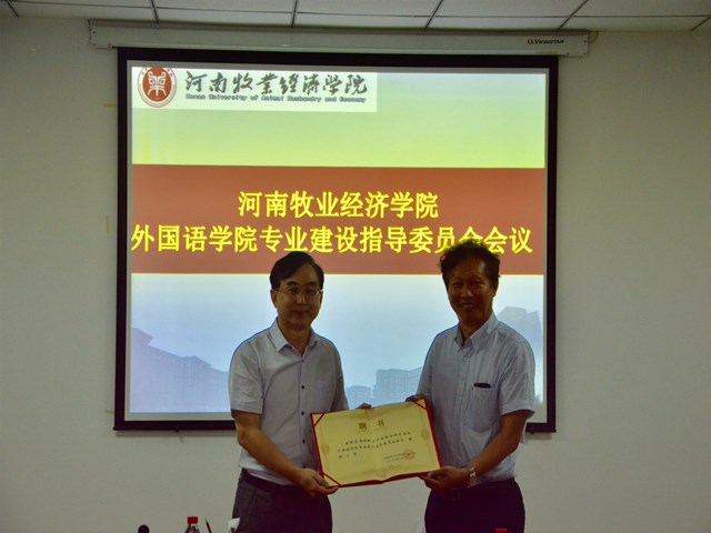 省涉外翻译与语言服务专家指导委员会主任、中国翻译协会对外话语体系研究委员会副主任,英语译审、省委外办原一级巡视员杨玮斌、中原工学院williamhill威廉希尔院长郭万群教授、华北水利水电大学社科处处长魏新强教授、河南农业大学williamhill威廉希尔院长张俊杰教授、郑州国际会展中心有限公司党委委员、董事、副总经理揭开宇、河南省国际贸易网商协会常务秘书长王毅、河南伊赛尔电子商务有限公司总经理申伟栋等校外专家应邀参会。