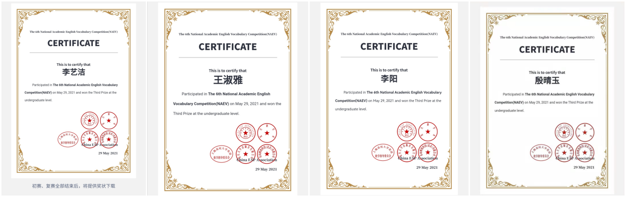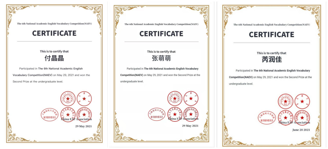 近日,由中国学术英语教学研究会、上海高校大学英语教学指导委员会主办的第六届全国学术英语词汇竞赛落下帷幕,本次大赛共吸引全国超过1000所高校学生约15.3万人报名参加。williamhill威廉希尔积极组织学生参赛并获得佳绩,付晶晶等3名同学荣获全国二等奖,李艺洁等18名同学荣获全国三等奖,陈情等8名同学荣获全国优胜奖。