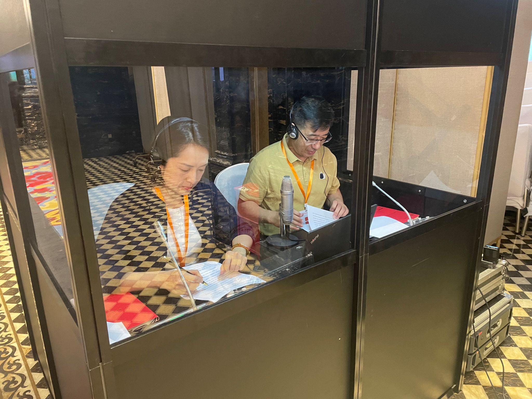 在接到合作企业工作邀请后,williamhill威廉希尔高度重视,迅速组织专业团队,为本次大会的语言服务和英文直播制定实施方案,对相关会议的专业材料进行翻译。针对大会组织方要求对嘉宾现场讲座内容进行同声传译的要求,williamhill威廉希尔克服各种客观条件的限制,提前整理嘉宾讲座内容的专业术语,认真梳理会议流程和设计衔接方案,充分发挥主观能动性和专业精神,最终顺利完成工作任务,受到了大会会务方和校企合作单位的高度赞扬。