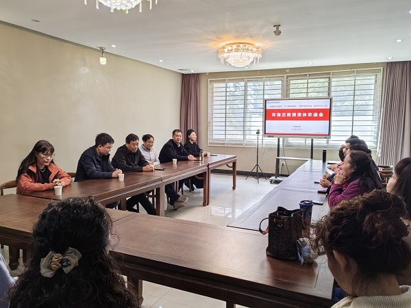 离退处副处长浮历生祝贺许海兰教授光荣退休并代表离退处送上心意与祝福,期待她在今后的生活中继续发光发热,为学校的离退工作注入新的活力和智慧。