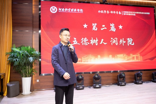 在“立德树人 润外院”第二个篇章中,学院领导向获得学院“学科竞赛指导达人奖”、“教科研精英奖”、“文体达人奖”、“学管先锋奖”、“服务标兵奖”、“社会服务标兵奖”、“国际友谊奖”等教师颁奖。