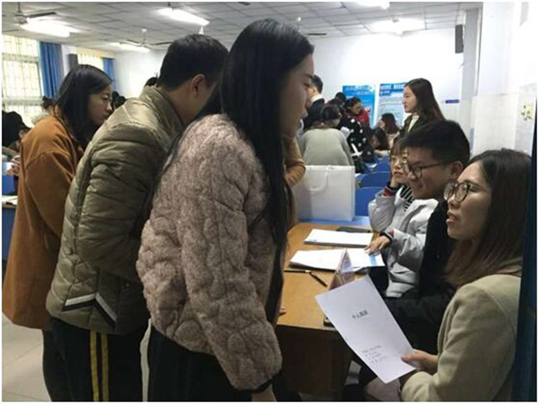 根据用人单位意见及我系实际,已宣讲完毕的企业到系会议室召开校企恳谈会,深化合作;没讲完的每个企业给十分钟时间宣讲。本次招聘会以企业签到开场,各个企业负责人于校门口找到各自的台签,由我系团学会成员根据企业宣讲情况将负责人带到系办公室或者相应的宣讲教室。各企业负责人详细介绍了公司概况、招聘岗位及招聘要求。宣讲结束后,企业开始对投递个人简历的毕业生进行面试,并对符合条件的毕业生进行了个人情况登记。